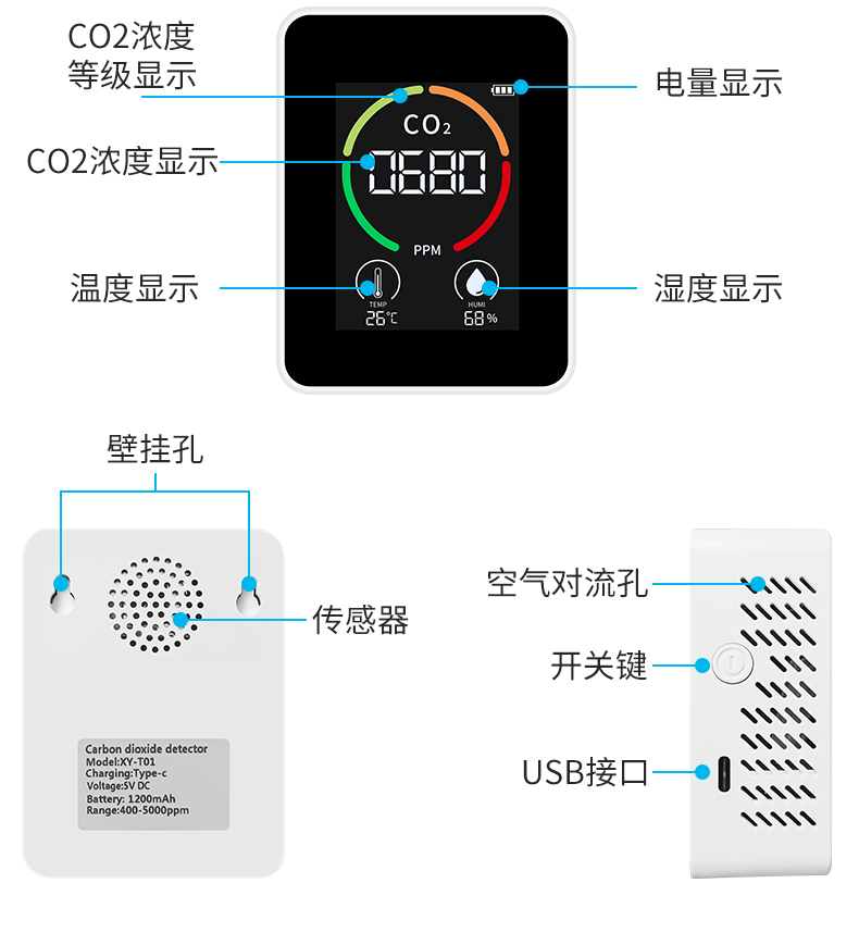 二氧化碳(CO2):CO2它是燃烧的副产物,是生物代谢过程的结果。接触二氧化碳(CO2)会造成一些严重的健康影响,包括头痛、头晕、易怒、呼吸困难、出汗、疲劳和心率增加。你的身体是室内二氧化碳最重要的来源。家中的其他二氧化碳来源是传统的明火(比如煤气、火炉、壁炉、蜡烛、香烟等)。在某些情况下,家地底下面的土壤也有可能释放出来为一定危险系数的二氧化碳。我们可通过室内空气质量检测仪监控空气之中的CO2,以保证良好的室内空气质量。