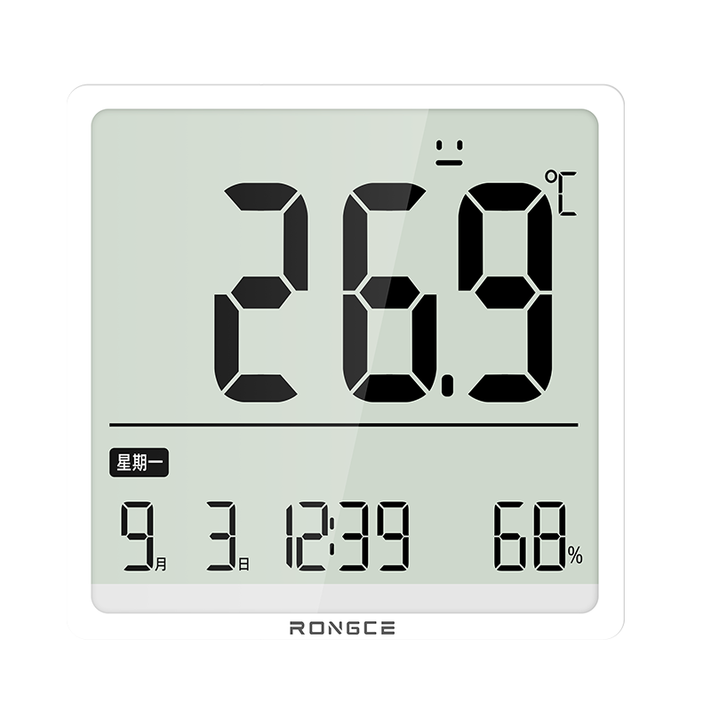 产品描述:LX8116C 民用温湿度计说明书一、功能与按键说明(一)功能图示相关设备可显示温度(单位℃/℉)、湿度(单位 % RH)、时间,具备表情显示功能,还设有菜单键