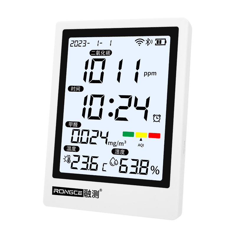 RC5001、RC5002、RC5003 是同一系列下的多功能室内环境监测设备,可实时检测温度、湿度、PM2.5、二氧化碳(CO₂)、甲醛及空气质量提示(AQI),并支持报警提示功能。适用于家庭、办公室、学校、实验室等场景,帮助用户全面掌握环境健康状态。